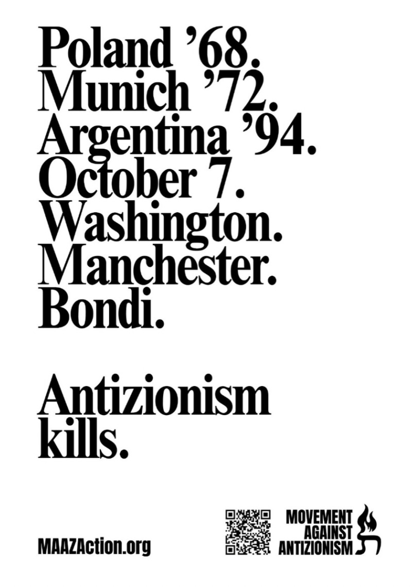 When we let “anti-Zionist” be treated like some kind of progressive credential instead of calling it what it is (an ideology that says Jews shouldn’t get to exist as a people) we can’t act shocked that synagogues in Sydney and Melbourne need armed guards, that Jewish schools have security checkpoints, that you can’t have a community event without police there.