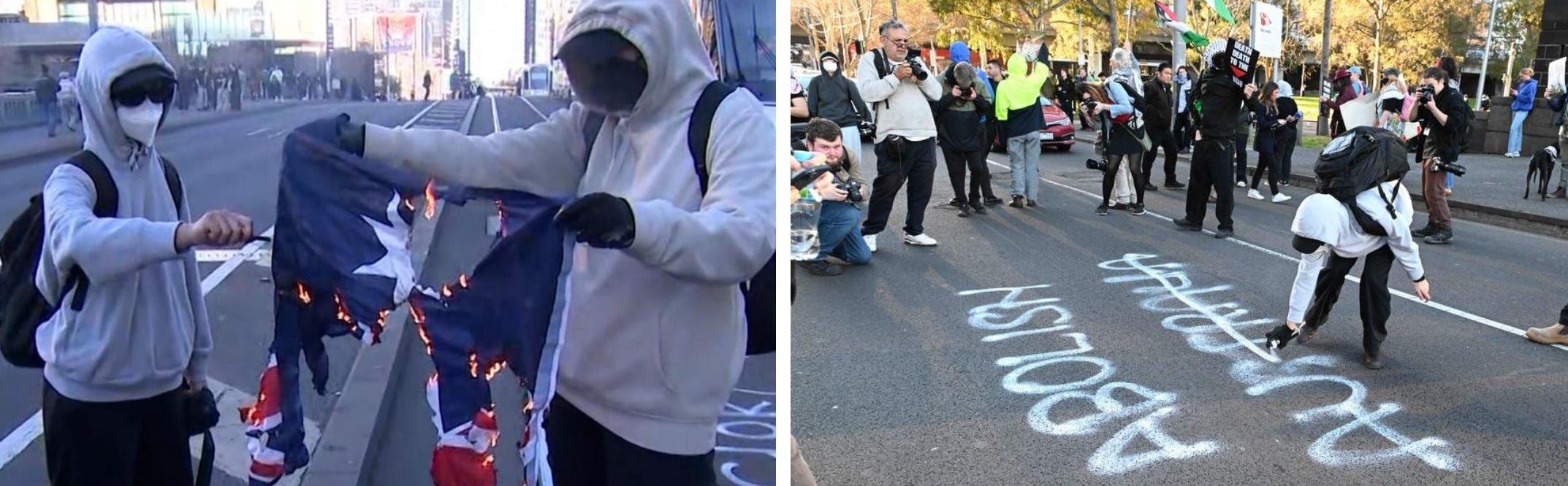 Burning the Australian flag and calling to abolish Australia
